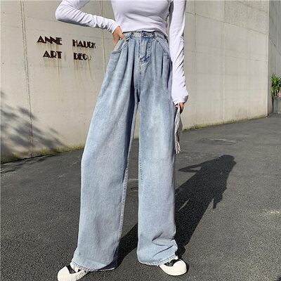 即納 秋服 新作 デニムパンツ ズボン パンツ ワイドパンツ 韓国ファッション レディース 通勤 気質 体型カバー 着やせ ゆったり