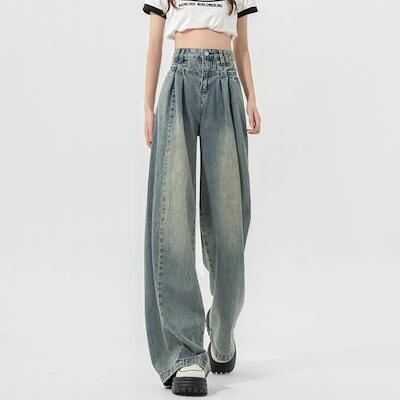 2024新作 おしゃれ シンプル デニムパンツ ハイウエスト ワイドパンツ ジーンズ レディース レトロ ゆったり ズボン デニムボトムス スキニーパンツひんやりボトムス