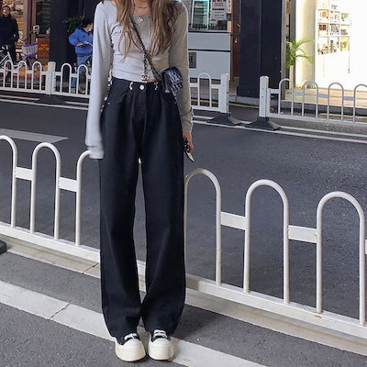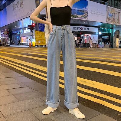 韓国ファッション 夏 ワイドパンツ デニム 脚長効果 ズボン レディース ロングズボン モップパンツ 2024新作 デニムボトムス デニムパンツ