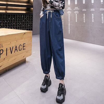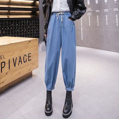 デニムボトムス 秋 デニムパンツ 韓国ファッション ゆったり ジーンズ レディース ハイウエスト着痩せ デニム ワイドパンツ体型カバー ひんやりボトムス