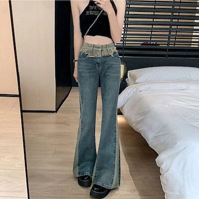 2024新作スキニーパンツ ズボン レディース 美脚効果 着痩せ ワイドパンツ デニム ズボン レディース ロングズボン モップパンツ デニムボトムス デニムパンツ ひんやりボトムス ワイドパンツ 福