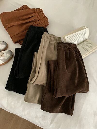 裏起毛 ロングパンツ コーデユロイ レディース パンツ ロング スウェットパンツ ワイドパンツ テーパードパンツ パンツ ウェストゴム 裏起毛パンツ パイル 裏ボア ボトムス ジョガーパンツ 体型