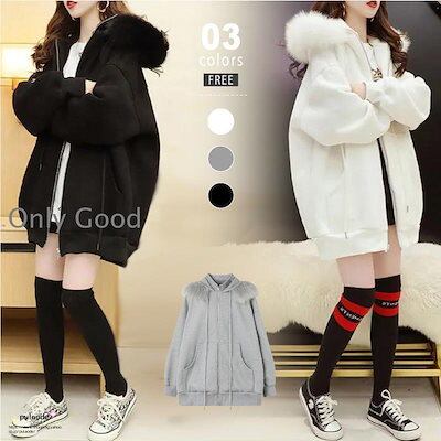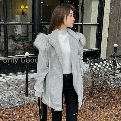 裏起毛 パーカー オーバーサイズ ファー付き ジップアップパーカー アウター レディース ファー フェイクファー フード付き スウェット ブルゾン 大きいサイズ