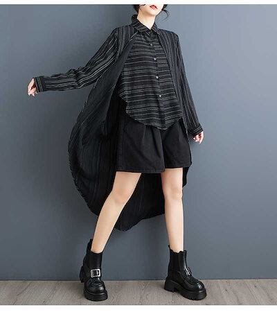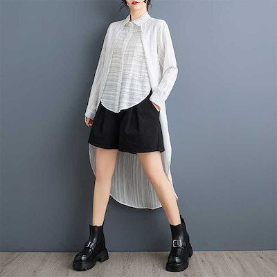 「ファットガール」 2025春 ロングブラウス 2セット 前短後長 シャツセット 大きいサイズ 体型カバー チュニック レディース メガ割