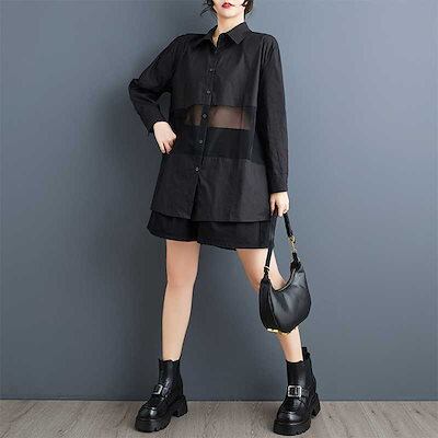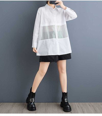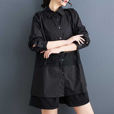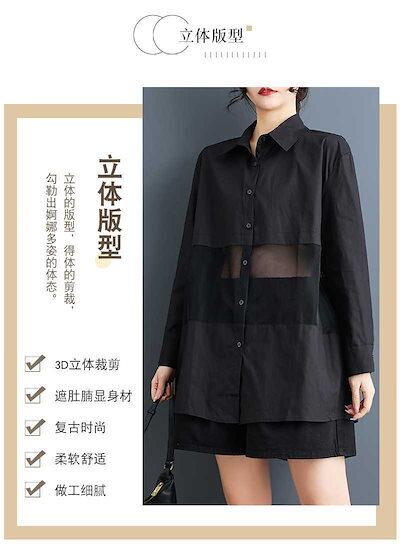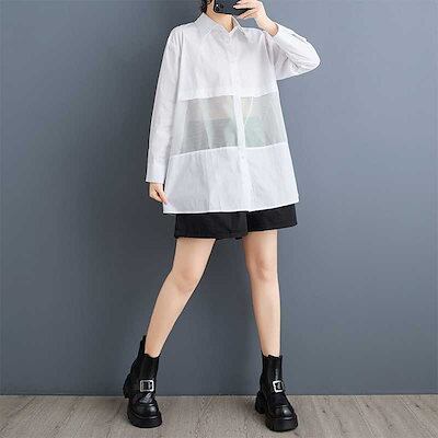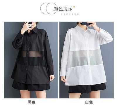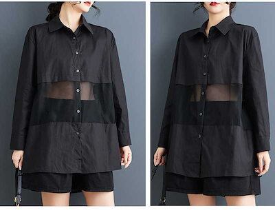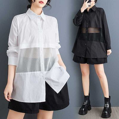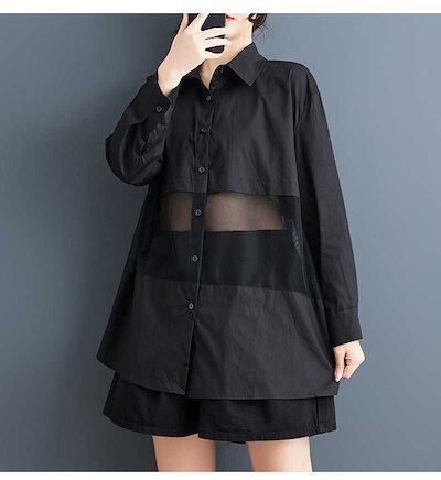 「ファットガール」 2025春 チュールドッキング ブラウス メッシュ 大きいサイズ 体型カバー レディース シャツ メガ割