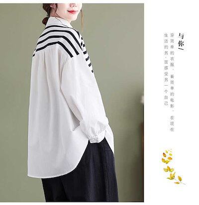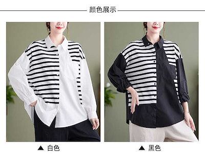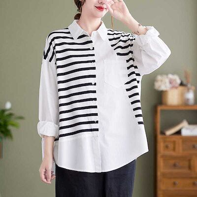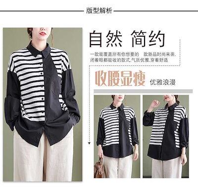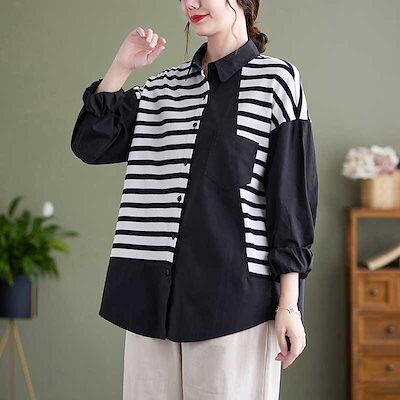 「ファットガール」 2025春 ボーダーシャツ 大きいサイズ ドッキングブラウス 体型カバー レディース メガ割