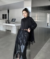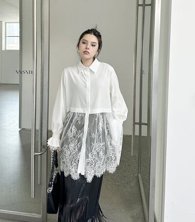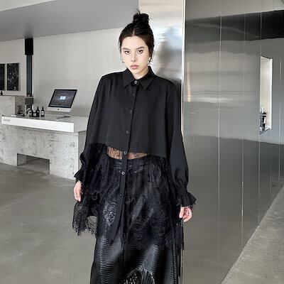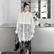 【J.Fashion】 2025春 レースドッキング チュニック ロングブラウス おしゃれ レディース 関連商品購入可能 メガ割