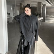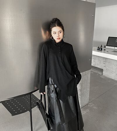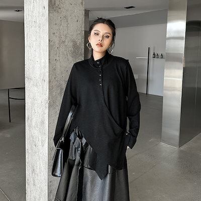【J.Fashion】 2025春 不規則裾 ブラウス スタンド襟 おしゃれ レディース シャツ 関連商品購入可能 メガ割