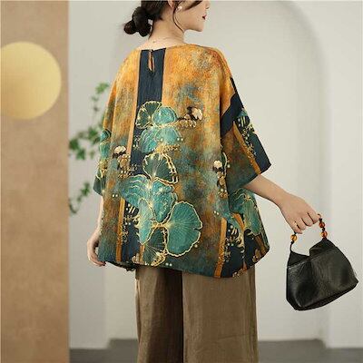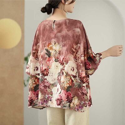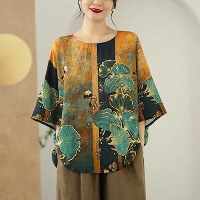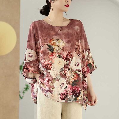 「ファットガール」 2025春新品 柄Tシャツ 大きいサイズ 体型カバー レディース ブラウス 七分袖 チュニック メガ割