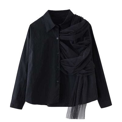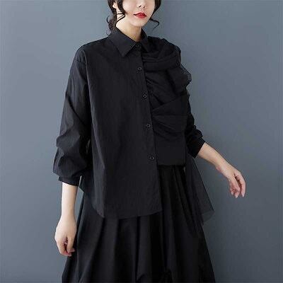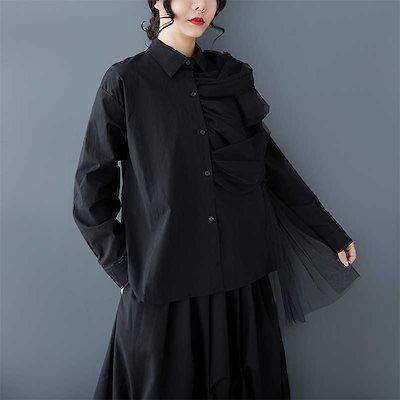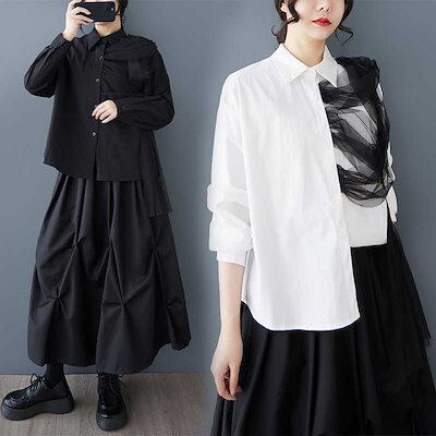 「ファットガール」 2025春新品 チュールドッキング ブラウス レトロ 大きいサイズ 体型カバー レディース 長袖 シャツ メガ割