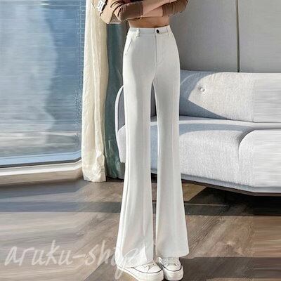 ベルボトムパンツ フレアパンツ レディース スラックス アイスシルクパンツ ベルボトム パンツ 美脚パンツ スーツパンツ 接触冷感 おしゃれ 脚長 きれいめ カジュアル ブラック ホワイト 体型カバー