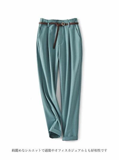 スラックス レディース ロングパンツ テーパードパンツ 9分丈 パンツ ズボン 長ズボン 腰ゴム ベルト 通気性 ソフト シンプル 無地 美脚 脚長 女性 ボトムス ロールアップ スタイルアップ ゆっ