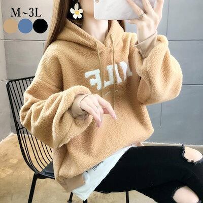 ボア パーカー レディース ロゴ トレーナ ルームウェア ロングパーカー 刺繍 もこもこ 裏起毛 大きいサイズ 体型カバー ゆったり 暖か M L 2L 3L