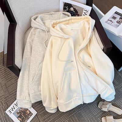 パーカーレディーススウェット秋冬ゆったり裏起毛厚手ベルベットボアコートラムズウールカーディガン