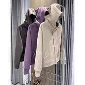 裏起毛厚手パーカーレディース秋冬ゆったり着やせアウタートップス百掛けカジュアル運動上着ジッパーコカーディガンート厚手秋冬小柄
