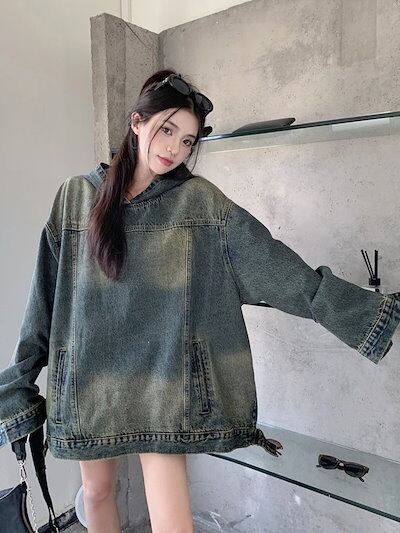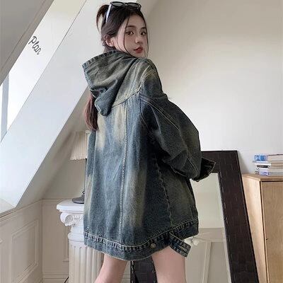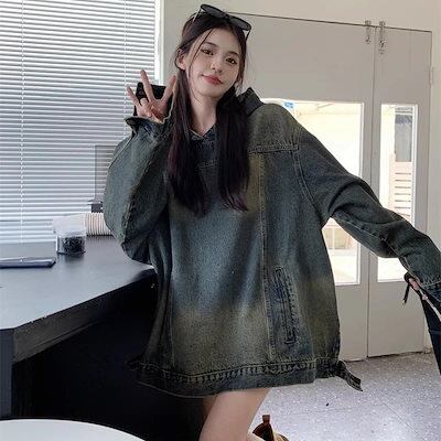 デニムパーカー Gジャン デニムジャケット パーカー フード付き ゆったり 長袖 トップス プルオーバー ジージャン アウター レディース 春 秋 冬 レトロ エイジング加工 カジュアル ファッション