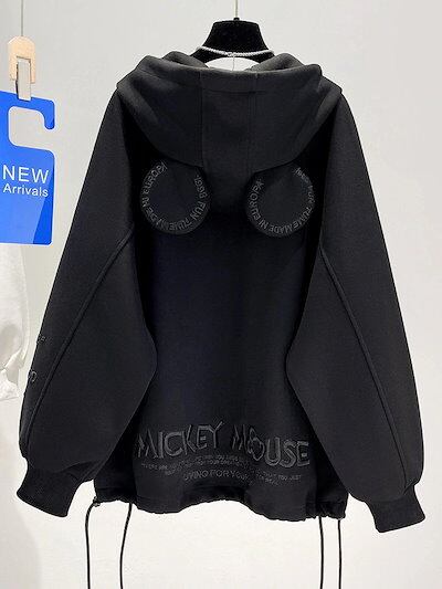 新しい フリース スウェット カーディガン 新作 刺繍 ミッキーの耳 フード付き ゆったり 万能 厚手 コート レディース長袖ミッキー ニット