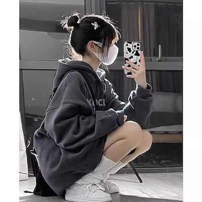 レディーストレーナープルオーバーゆったりカジュアルBF風ヒップホップ春秋ゆパーカー