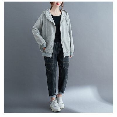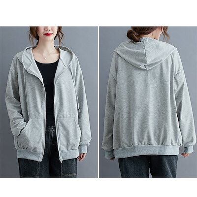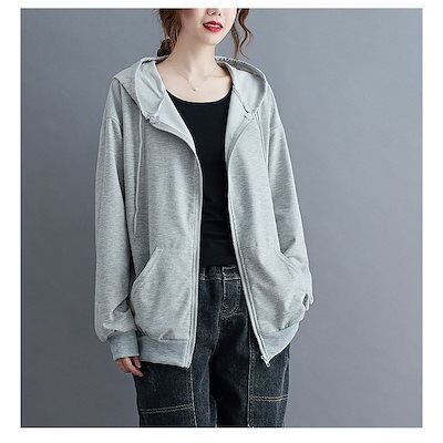 パーカー アウター レディース ジップアップ パーカー 秋 新作 ゆったり スウェット ジップパーカー フード付き アウター カジュアル 体型カバー シンプル