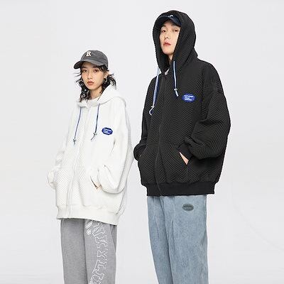 韓国ファッションレディース大きいサイズパーカー秋服ウェット長袖トップスメンズ黒白ジャケットショートアウター福袋