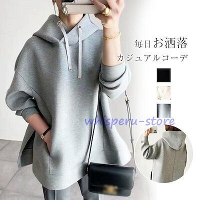 スウェット パーカー レディース 長袖パーカー プルオーバー 大きいサイズ 春 秋 冬 ゆったり トレーナー トップス おしゃれ スリット