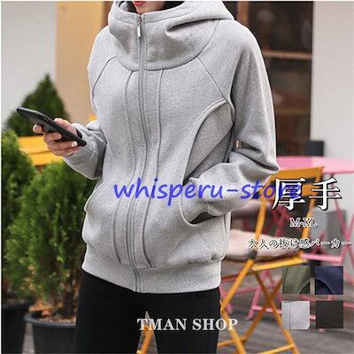 パーカー レディース トップス 長袖 ジップアップ 無地 厚手 裹起毛 トレーナー スウェット シンプル 小顔 大きいサイズ 着痩せ オフィス 大人 カジュアル