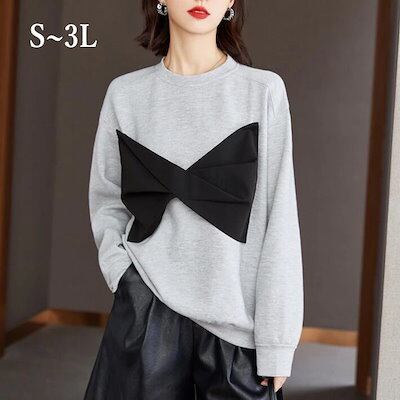 トレーナー レディース リボン ドルマン ルームウエア パーカー スウェット 部屋着 コットン 長袖 体型カバー ゆったり シンプル 無地 大きいサイズ 春秋冬 S M L 2L 3L今日は30パー
