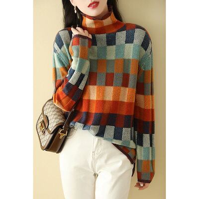 ック レイジー 薄手 アウター チェック セーター レディース 華やか カラフル チェッカーボード ニット セーター レディース