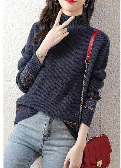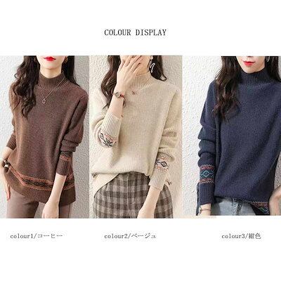 ニット レディース セーター ハイネックニット ニットセーター ニットソー 長袖 無地 秋冬 トップス ブラウス アウター ハイネック ストレッチ ニット インナー タートルネック 柄 カットソー チ