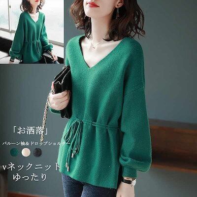 セーター vネック ニット ニットセーター バルーン袖 トップス レディース プルオーバー セーター 秋 冬 ストレッチ リブ付き 長袖ニット vネックセーター アウター ニットソー カットソー ニッ