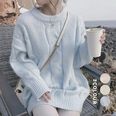 セーター ケーブル編み レディース ニット トップス 秋冬 ニットセータ アウター プルオーバー ニット カットソー ニットソー 無地 長袖 uネック 厚手 柔らかい あったか ニットセーター シン
