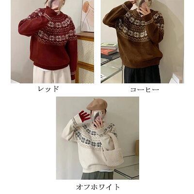 ニットセーター ニット トップス レディース 秋冬 セーター ニットセーター 長袖 花柄 クルーネック 秋 冬 ニットソー プルオーバー オーバーサイズ アウター 大きいサイズ 配色 セーター ドルマ