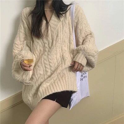 ニットセーター 秋冬 プルオーバー セーター ケーブル編み 厚手 トップス 長袖 大きいサイズ セーター レディース アウター vネック 秋 冬 ニットソー 無地 リブニット ベーシック インナー 柔