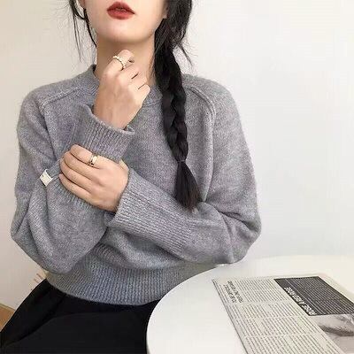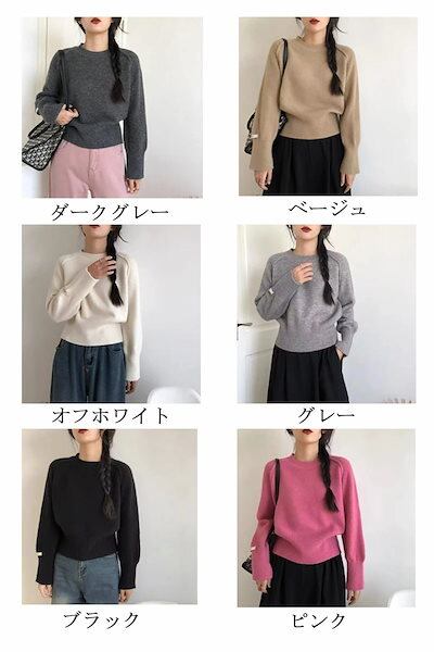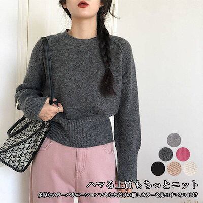 ニット レディース 秋冬 長袖 カットソー 春 ニットプルオーバー uネック インナー クルーネック セーター 秋 冬 トップス プルオーバー ニットセーター アウター ベーシック リブニット 無地