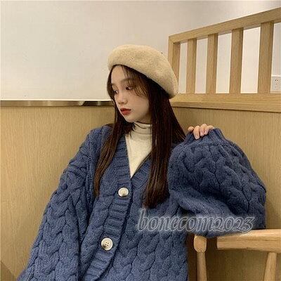 ニットセーター アウター 前開き きれいめ 秋冬 厚手 レディース ニットカーディガン 長袖 可愛い おしゃれ オーバーサイズ セーター