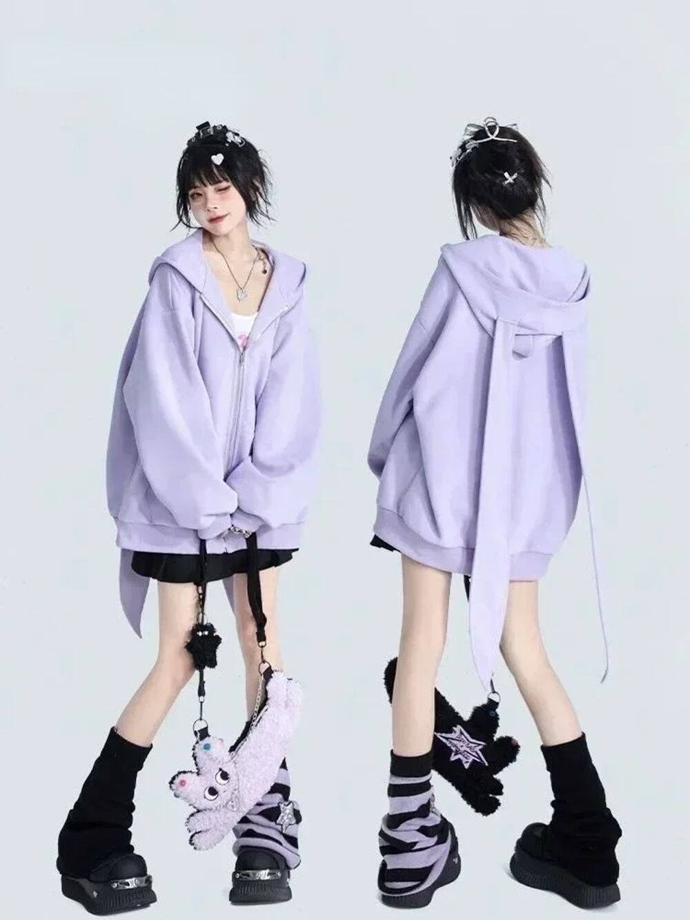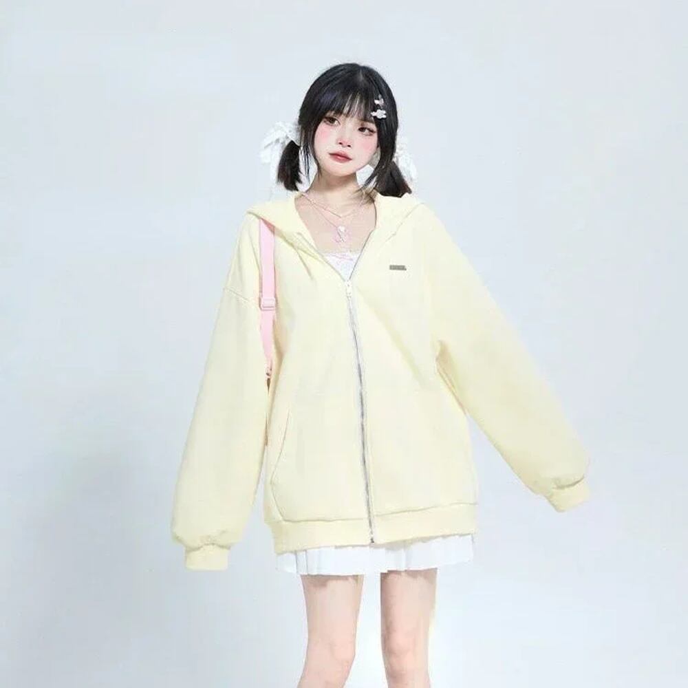女性用カワイイビナイヤーフーディー、日本のトレーナー、ジッパーカーディガン、ヴィンテージ冬服、カジュアル、多用途キュート、ルーズy2kコート パーカー ジャージ y2k T240908164215_02