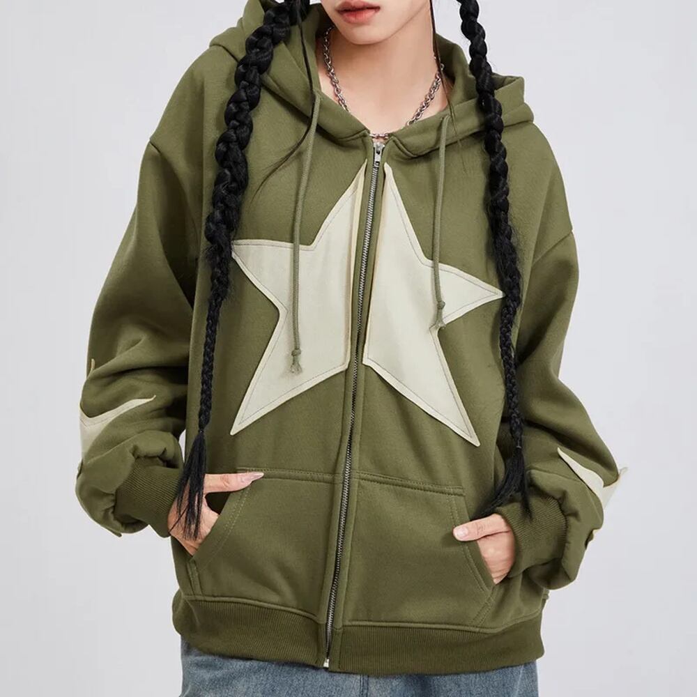 女性用長袖スタージップアップドローストリングパーカー、女性用衣類、ストリートウェアコート、春と秋の服、y2k パーカー ジャージ y2k T240908164510_02