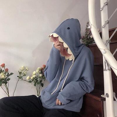 サメ フルオーバー 可愛い 面白い 長袖パーカー フード付き メンズ レディース おおきいサイズ 裏起毛 春秋 冬服 上着 和風 可愛い 日常着用 カジュアル 吸汗透湿 韓国風 学生 運動着 通学 ブ