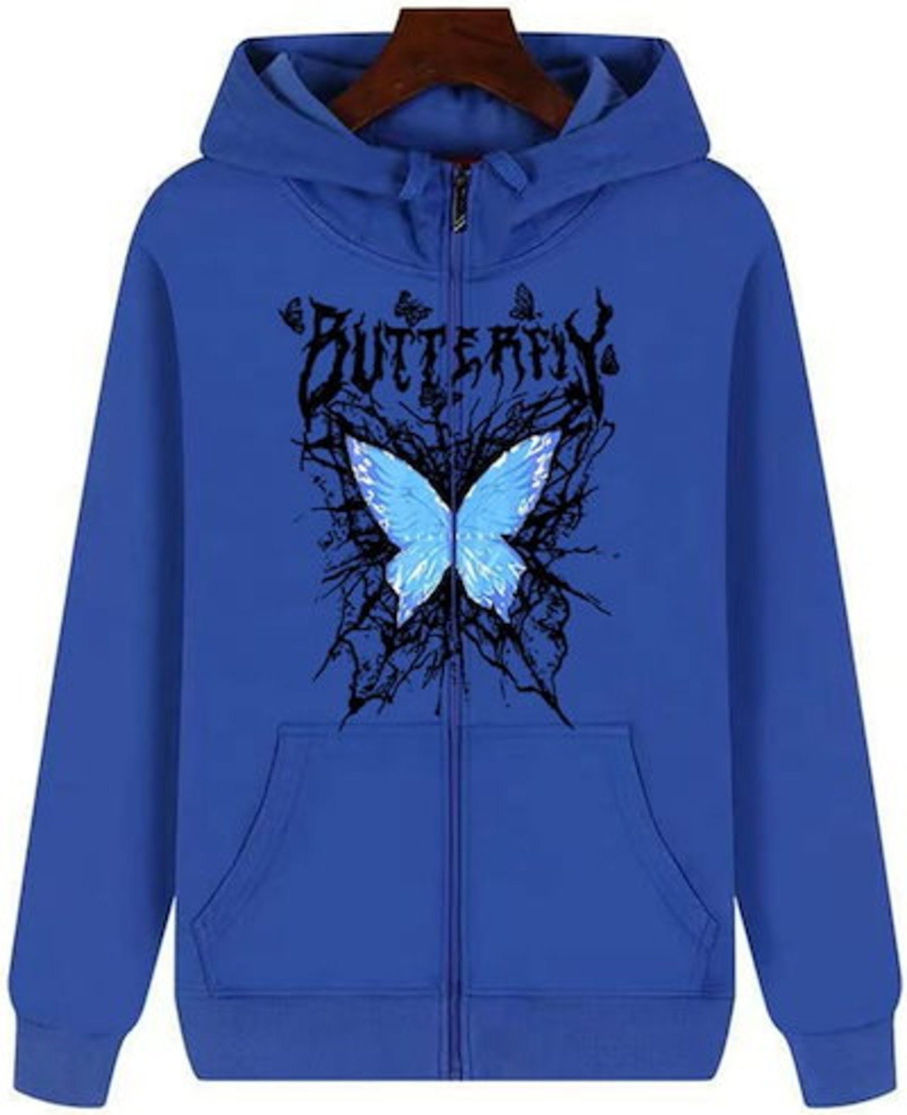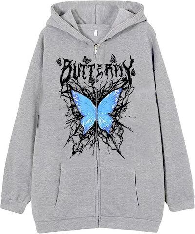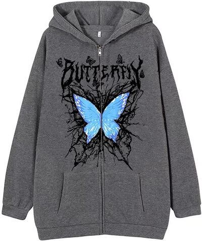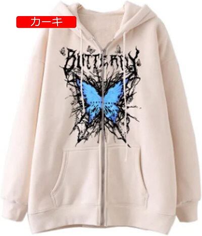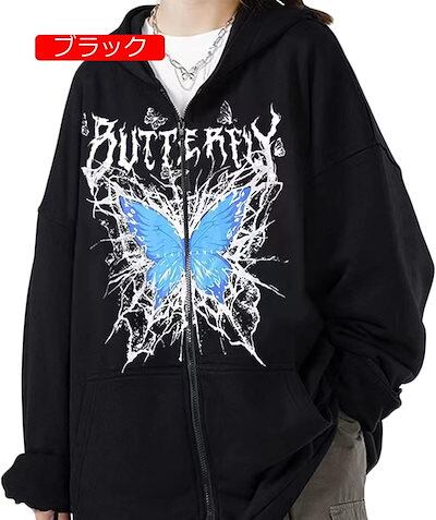 ジップアップパーカー レディース メンズ クールゴス パーカー パンク アウター バタフライ柄 コート フード スウェット ファスナーパーカー 大きめ きれいめ カジュアル 春 秋 冬 サブ