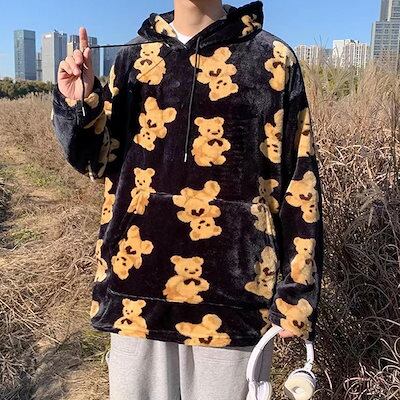 パーカー クマ 熊 かわいい プルオーバー メンズ フード付き レディース ボア付き 長袖 トレーナー フリース 春秋冬 ポケット付き ドローストリング付き カジュアル 肌触り良い 花火大会 部屋着