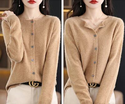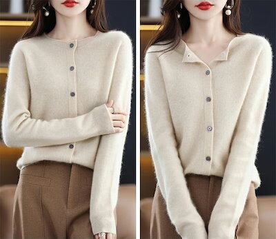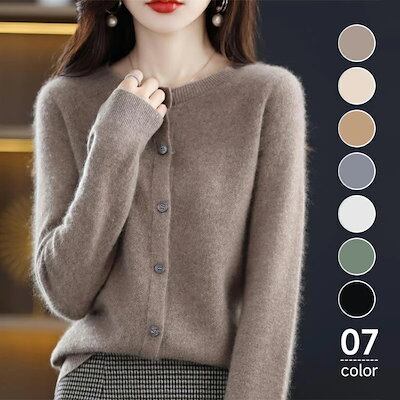 ニットカーディガン レディース 秋 冬 長袖 クルーネック ロングカーディガンニット セーター 厚手ショート トップス アウター 羽織り 前開き ボタン付き お洒落 カジュアル 大人可愛い 通勤 無地