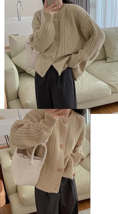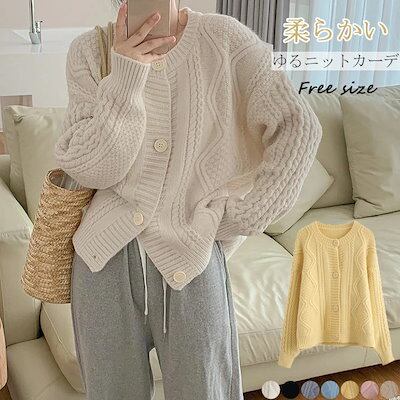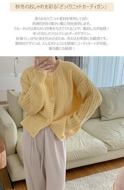 ニット カーディガン レディース 秋冬 トップス アウター 羽織り 長そで ニットカーディガン クルーネック 長袖カーディガン 無地 ドルマン ドロップショルダー カジュアル オーバーサイズ 体型カバ