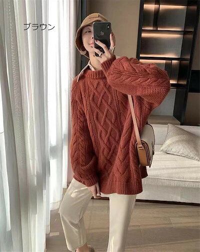 セーター ケーブル編み レディース ニット トップス 秋冬 ニットセータ アウター プルオーバー ニット カットソー ニットソー 無地 長袖 uネック ドルマンスリーブ 柔らかい ショート丈 ニット