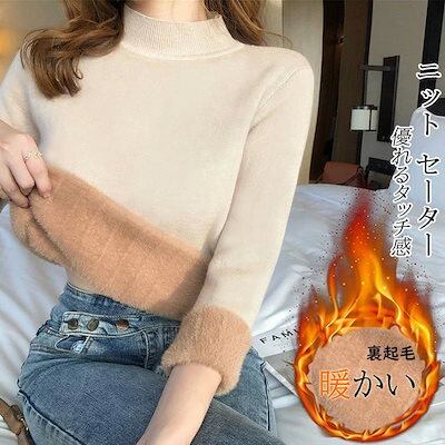 セーター ニット トップス カットソー 長袖 裏起毛 ニットセーター プチハイネック レディース 秋 冬 裏ボア 防寒 プルオーバー 無地 柔らかい アウター インナー ベーシック カジュアル あ