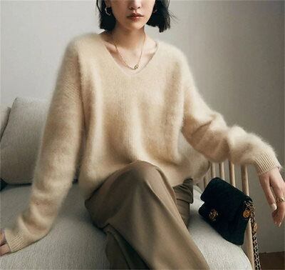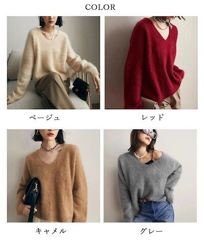 ニットソー セーター ニット レディース 長袖 ふんわり ニットセーター 秋 vネック カットソー ニットトップス vネックニット プルオーバー ゆったり ショート丈 体型カバー インナー アウター