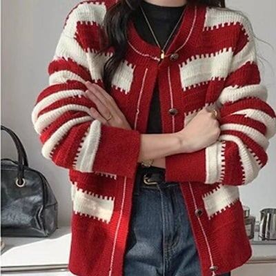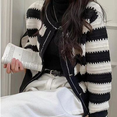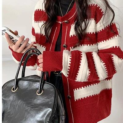 カーディガン アウター セーター レディース ニットアウター 秋冬 ニットセーター 秋 羽織 トップス ジャケット ボーダー柄 コート ニットコート ゆったり ショート丈 体型カバー 前開き カジュア
