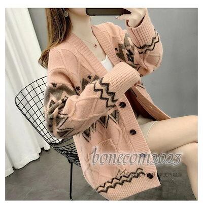 ネックカーディガン ニットカーディガン ショット丈セーターアウター ニットコーディガン 民族風 秋服 レディース 秋冬代長袖 韓国風 ゆったり オシャレ