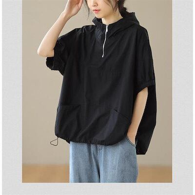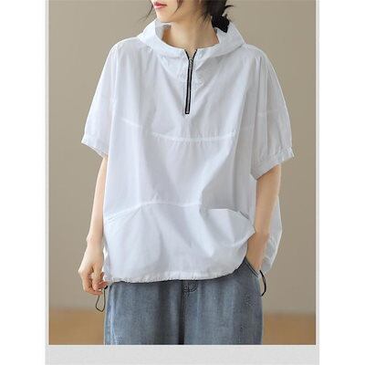 パーカー レディース ブラウス 春 夏 秋 フード付き 半袖 tシャツ 夏 ゆったり ビッグシルエット トップス 着心地 大人 体型カバー UVカット プルオーバー