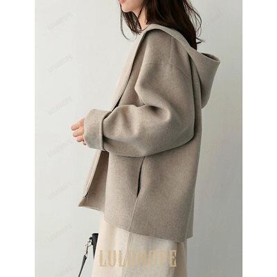 パーカー レディース ラシャコート 秋 冬 ショートコート コート チェスターコート ジャケット フード付き カーディガン アウター 無地 長袖 大きいサイズ 通勤