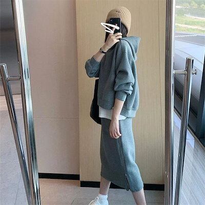 セットアップ 上下セット パーカー レディース スカートスーツ トレーナー + スカート 2点セット パーカーセットアップ 春秋 大きいサイズ 長袖 スカート